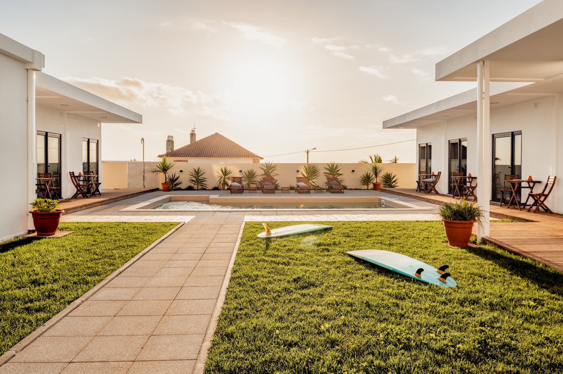 Das Surfcamp erstreckt sich über eine Fläche von 1700m² und bietet alle Annehmlichkeiten für einen optimalen Surfurlaub. Während tagsüber die Pool Area das soziale Zentrum des Camps ist, trifft man sich abends im gemütlichen Innenhof und an der Bar. Wer es ganz gechillt bevorzugt, ist herzlich eingeladen, das Geschehen im Camp einfach aus der Hängematte zu beobachten.